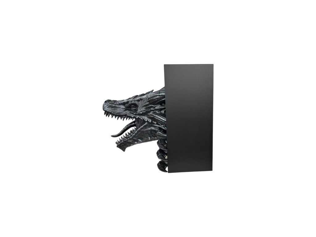 Zuřivý černý drak proráží temným portálem, s drápy ostrými jako břitva, jako by se dral do našeho světa. Perfektní pro milovníky fantasy, fanoušky D&D a každého, kdo sní o dracích číhajících mezi knihami.