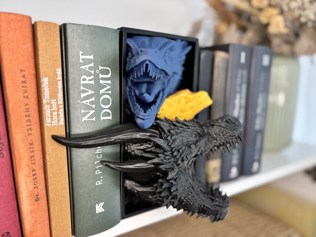 Tento jedinečný Book Nook (Dekorace do knihovny) je inspirovaný bestsellerovou sérií Empyreum. Zobrazuje tři mocné dračí hlavy Sgaeyl, Andarnu a Tairna, pohled na tuto dekoraci tě vtáhne zpět do Navarry. Je to dokonalá dekorace pro milovníky draků, fanoušky fantasy a nadšence epických příběhů.